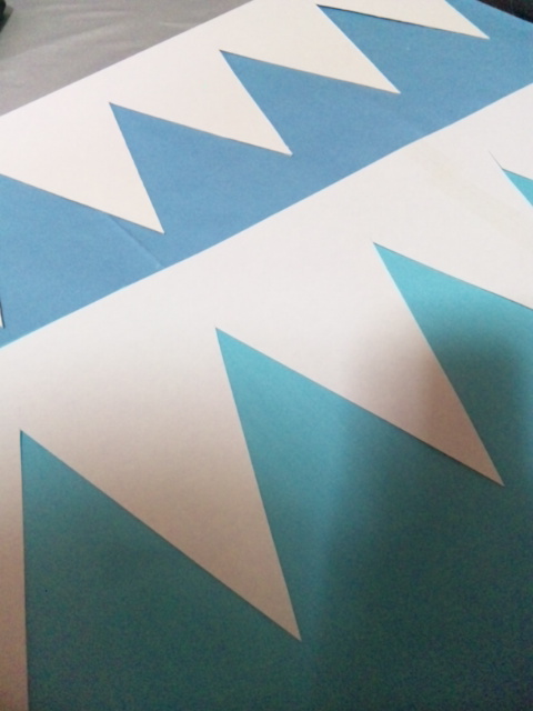 6時に起きて布切って△の型紙出来たー!